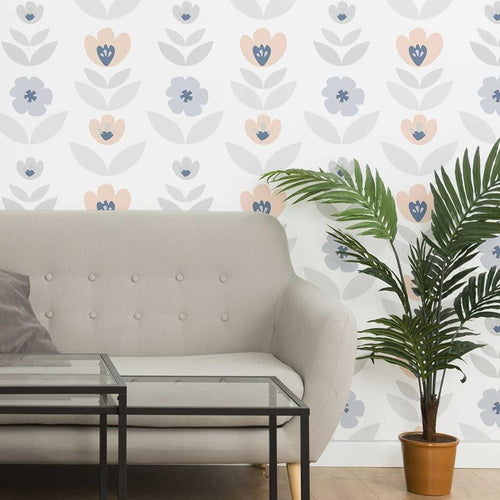Floral Pastel Colors Blue and Pink Peel & Stick Wallpaper N06187