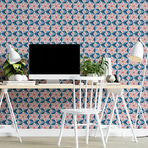 Geometric Blue and Red Peel & Stick Wallpaper N04099