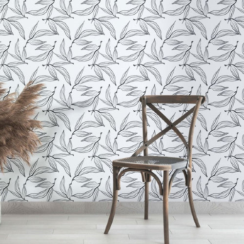 Leaves Lines Beige and Black Peel & Stick Wallpaper N06214