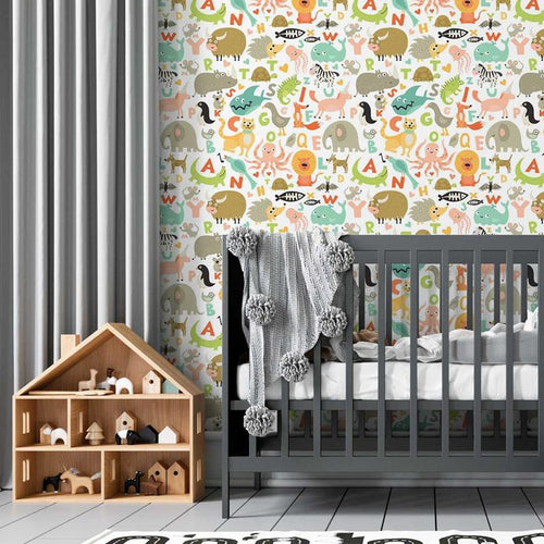 Animals and Letters Colorful Peel & Stick Wallpaper N05004