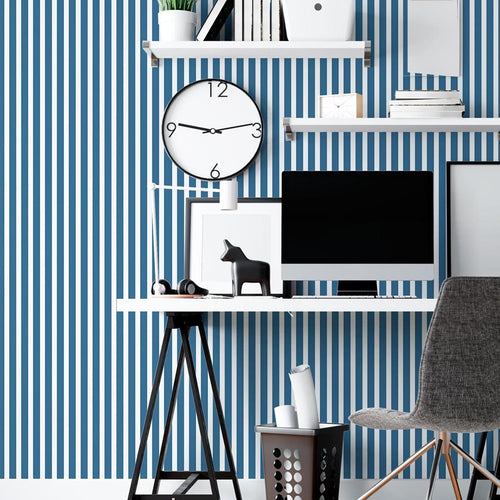 Blue and White Striped Peel & Stick Wallpaper N06266
