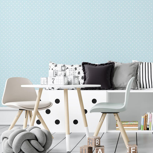 Blue Polka Dots White Peel & Stick Wallpaper N04028