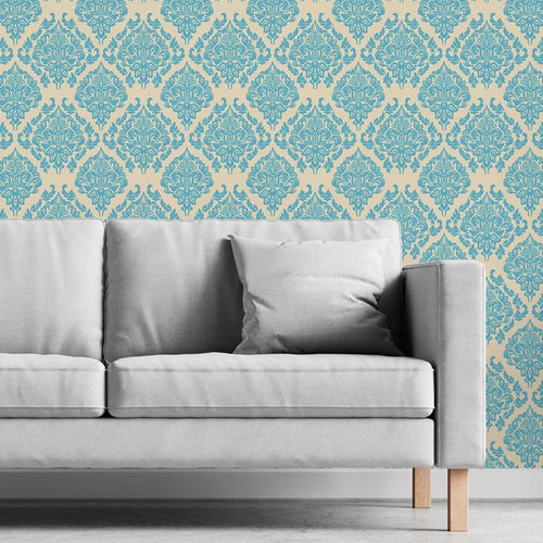 Damask Classic Blue and Beige Peel & Stick Wallpaper N06058