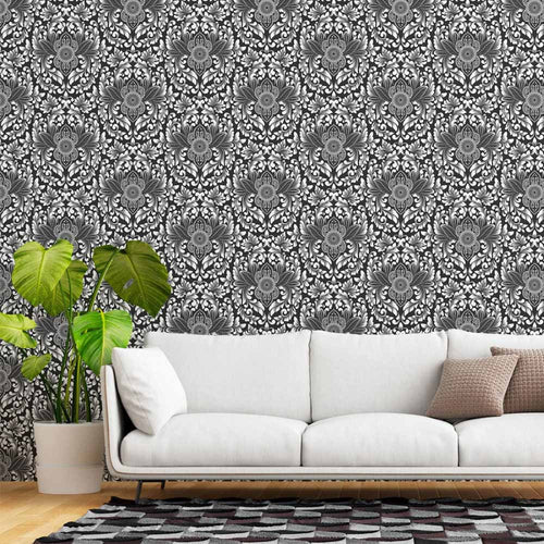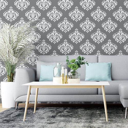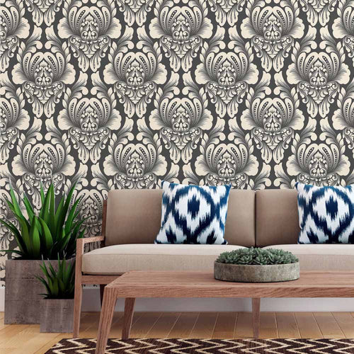 Damask Dark Gray Peel & Stick Wallpaper N04154