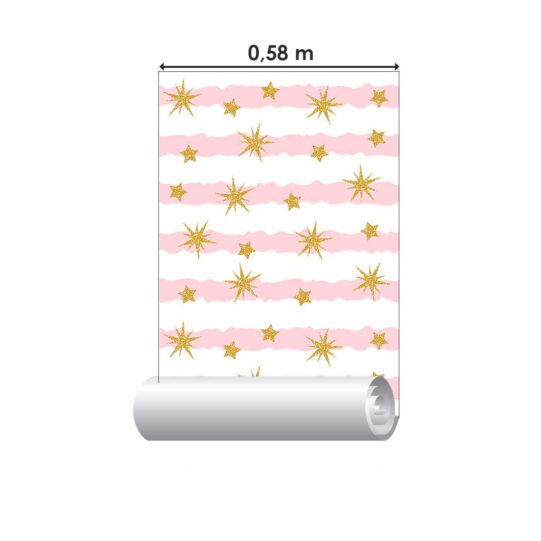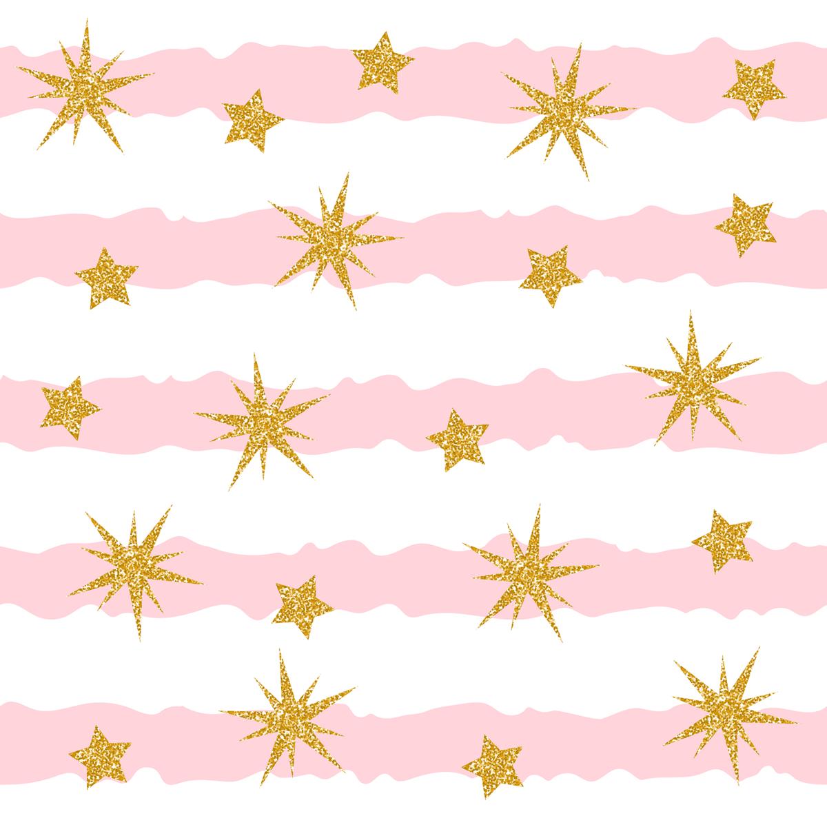 Abstract Stripes Pink and Stars Golden Glitter Peel & Stick Wallpaper N07085