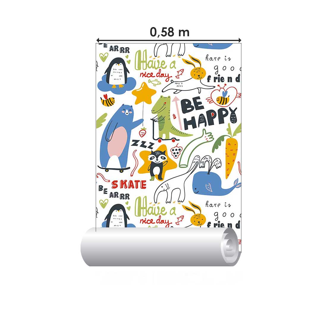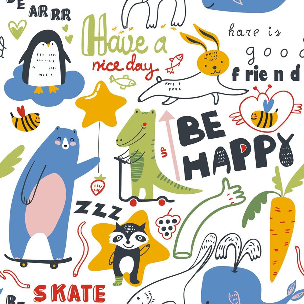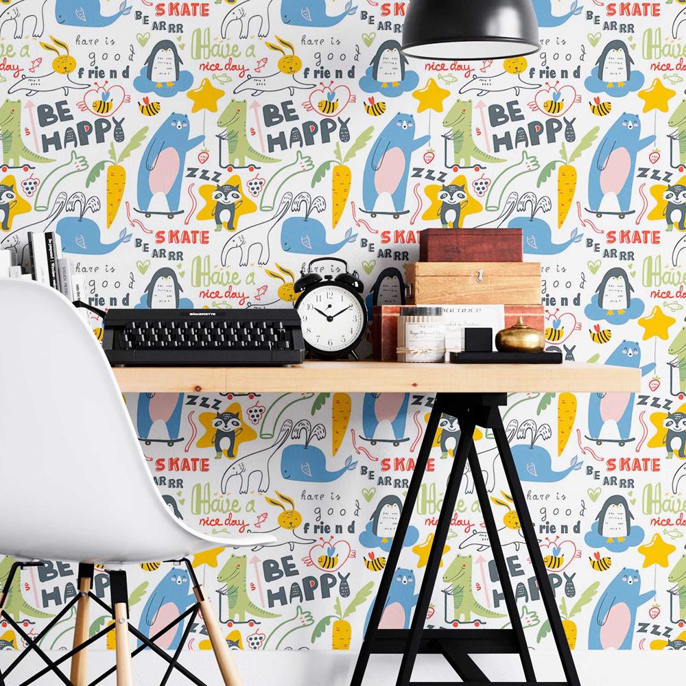 Animais Cartoon Lettering Peel & Stick Wallpaper N08034