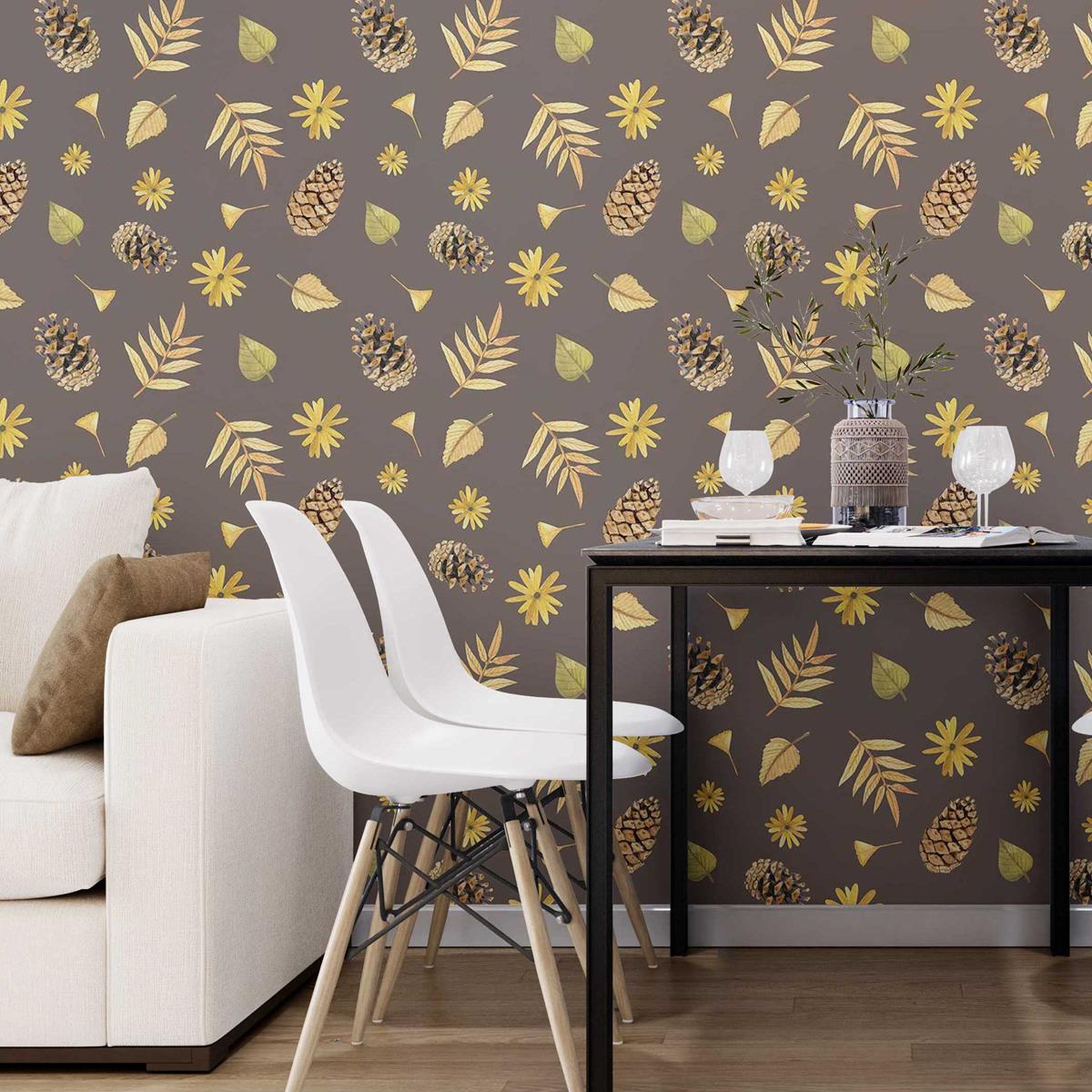 Autumn Pine Cones Flowers Brown Peel & Stick Wallpaper N07030