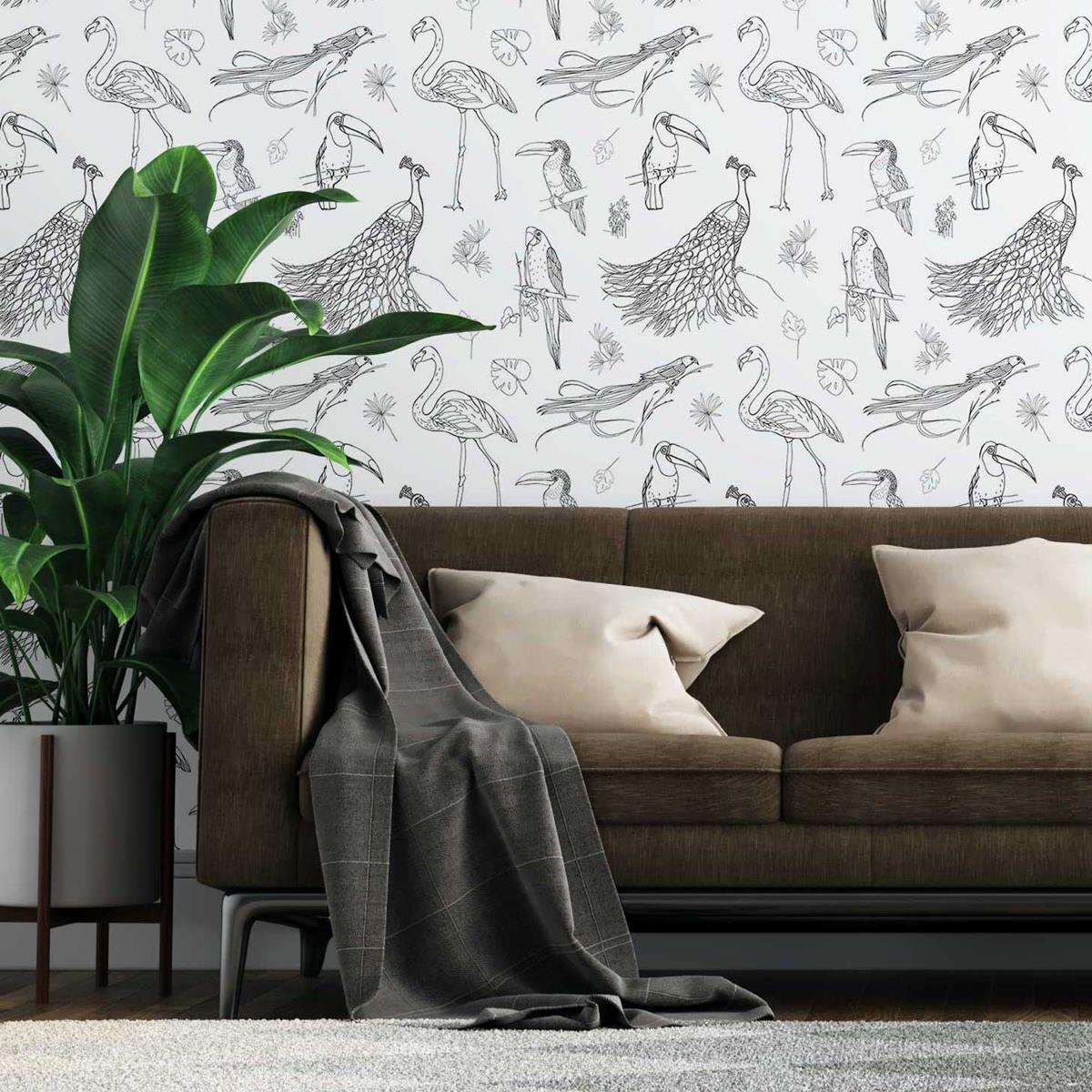 Aves Tropical Black and White Peel & Stick Wallpaper N07054