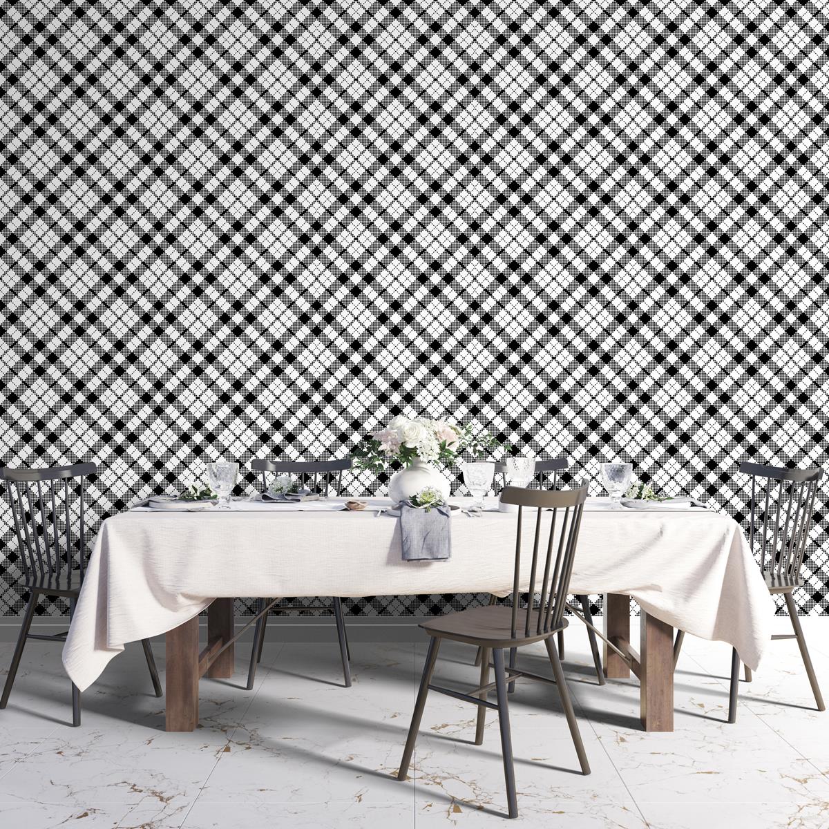 • Load image into Gallery viewer, B&W Plaid Peel & Stick Wallpaper N04188