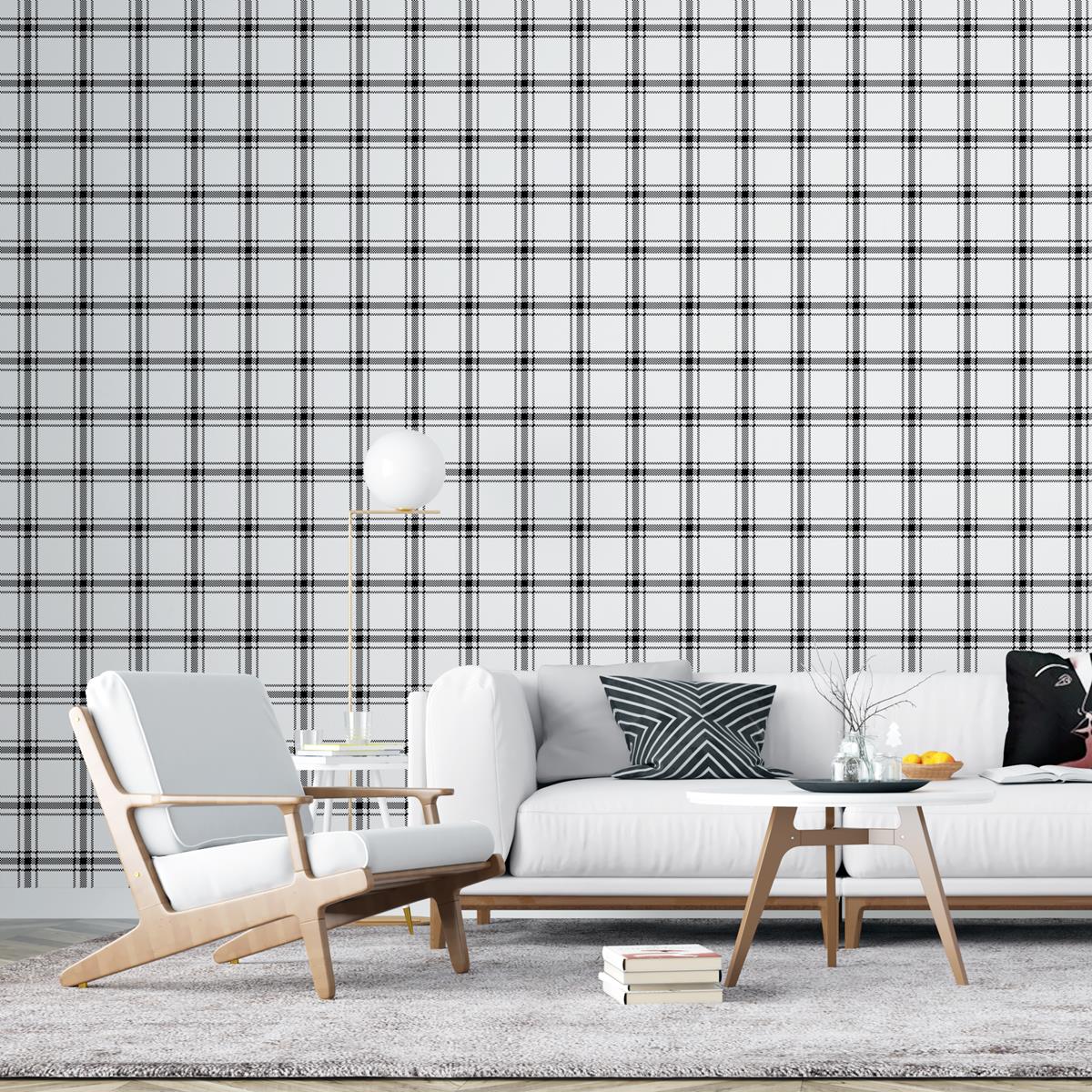 • Load image into Gallery viewer, B&W Plaid Peel & Stick Wallpaper N04189