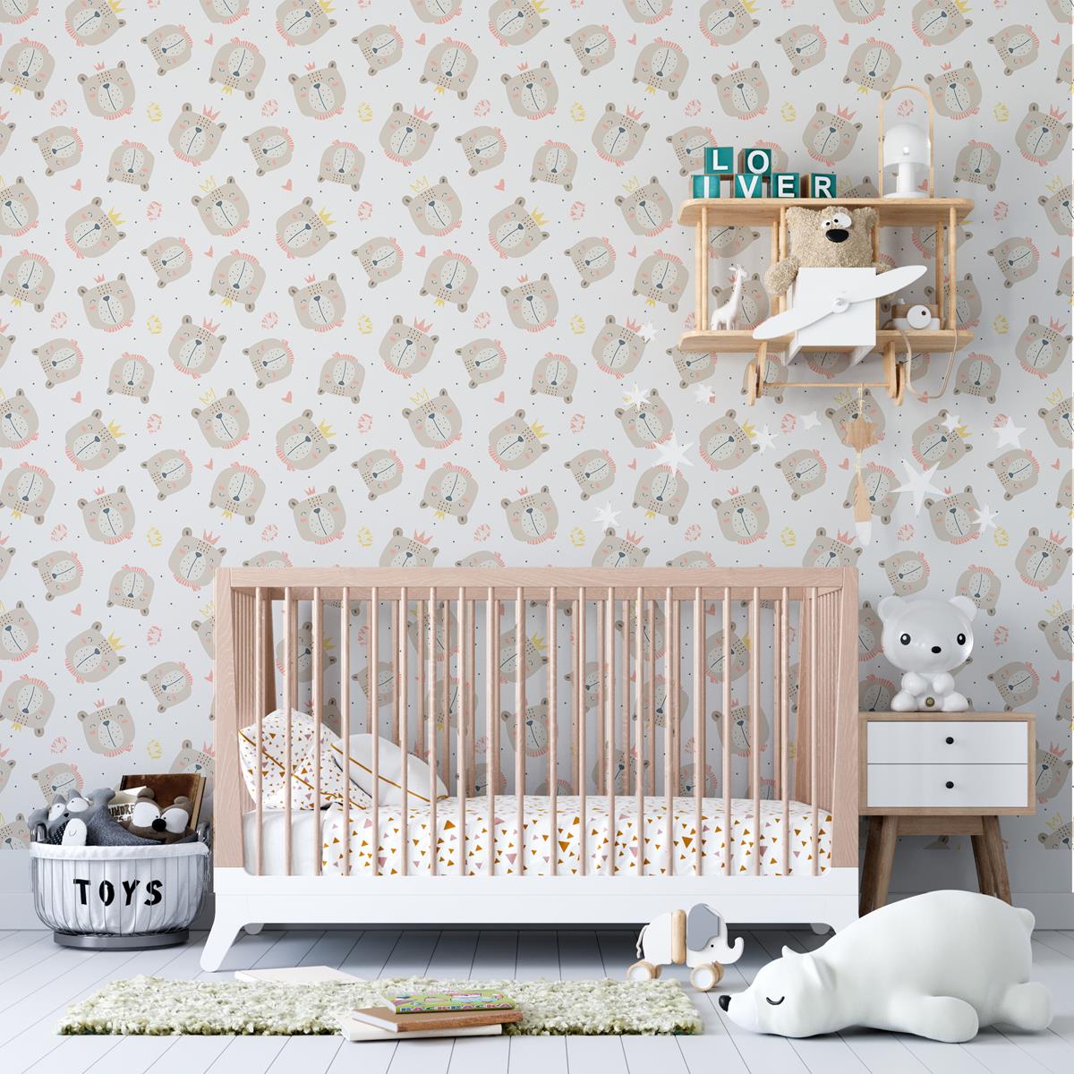 Bear with Crown Peel & Stick Wallpaper N04080