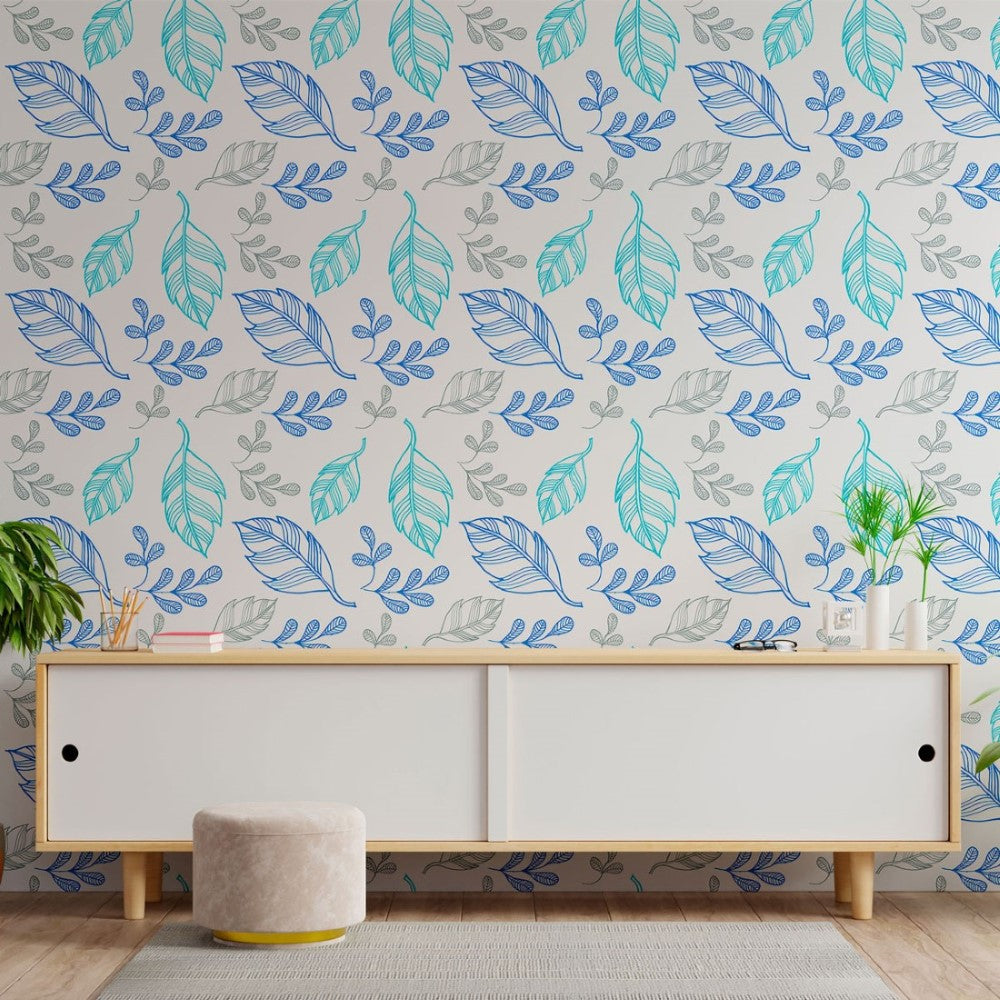 • Load image into Gallery viewer, Blue Leaves Peel & Stick Wallpaper N013127