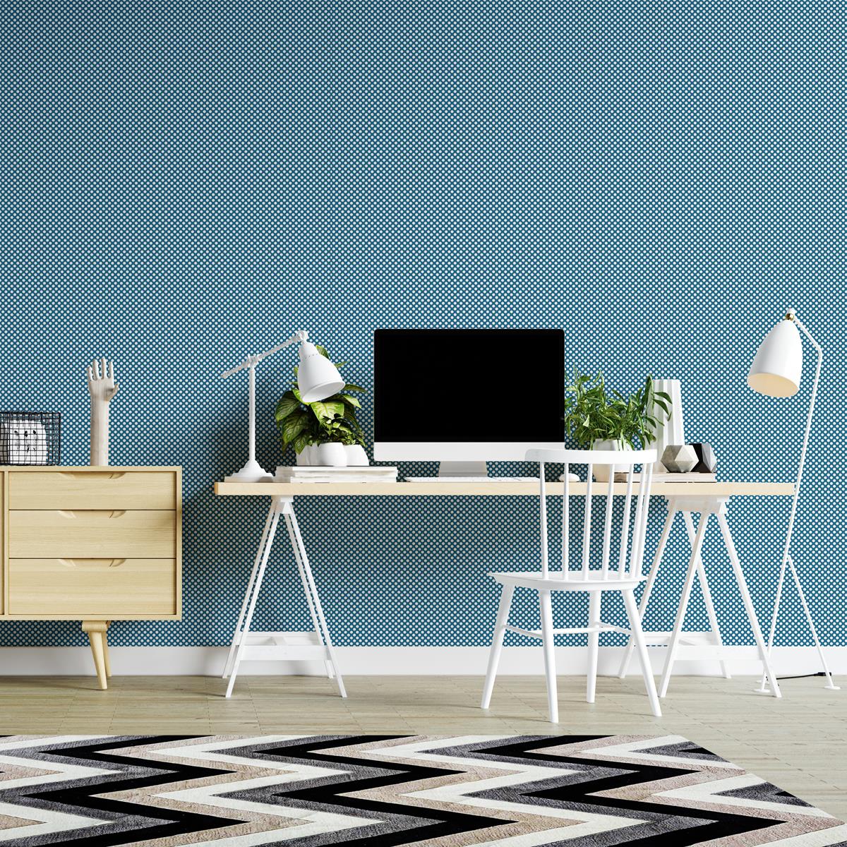 • Load image into Gallery viewer, Blue Polka Dots White Peel & Stick Wallpaper N04030