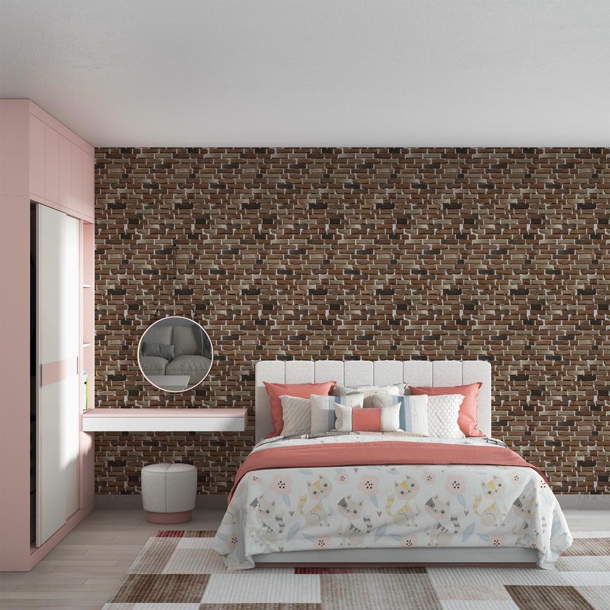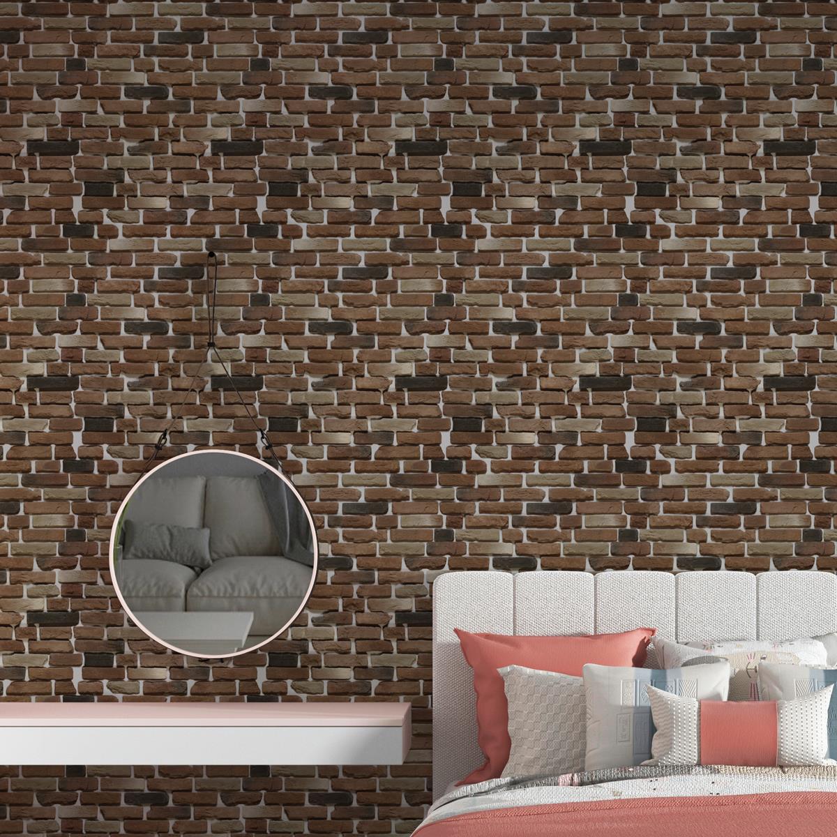 Brick Wall Rustic Brown Peel & Stick Wallpaper NP057