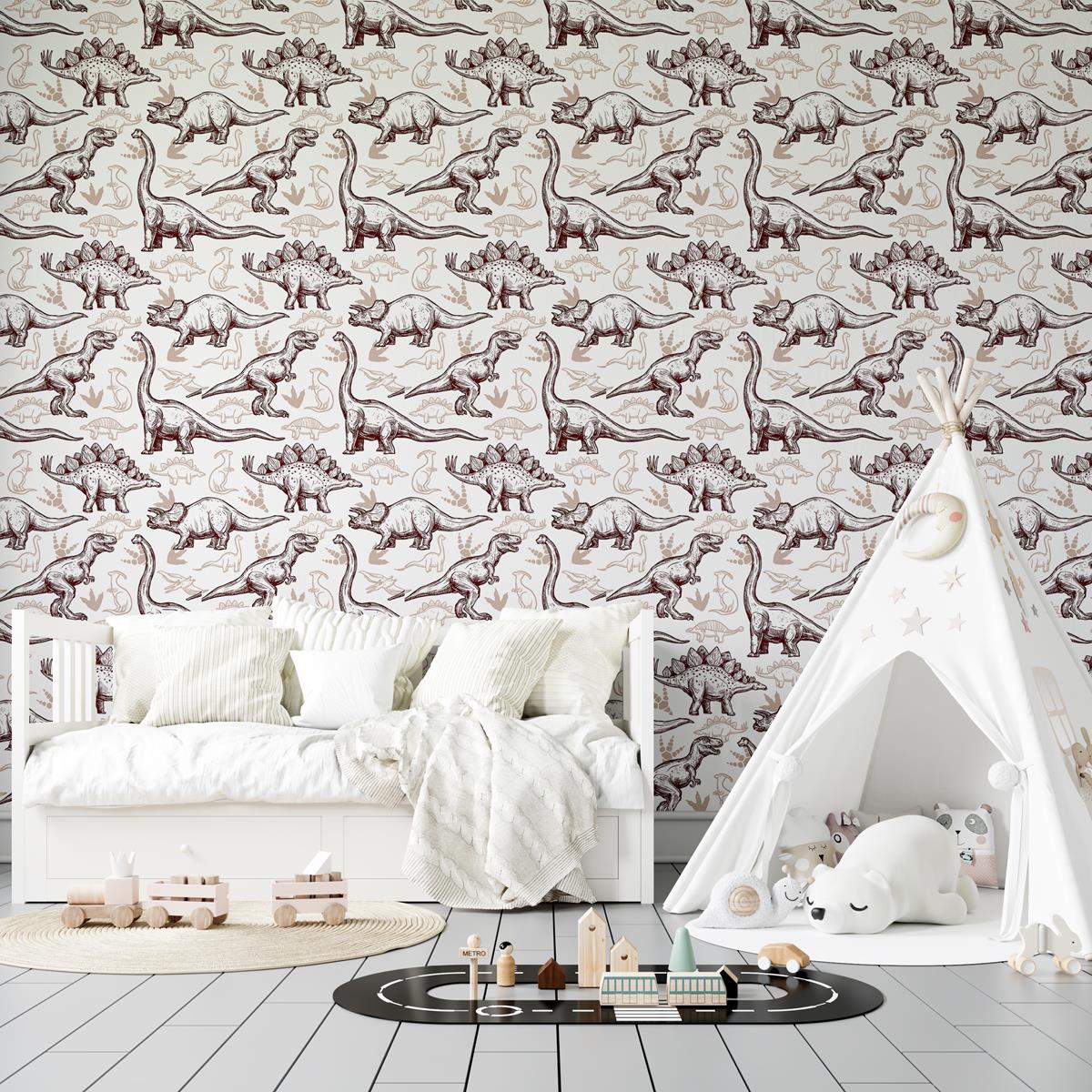 Brown and Beige Dinosaurs Peel & Stick Wallpaper N04245
