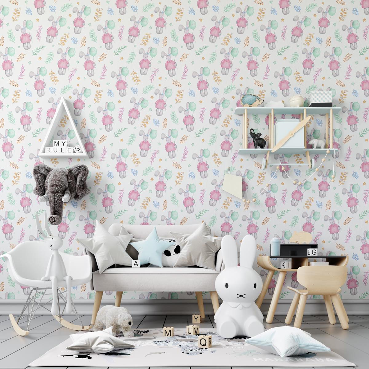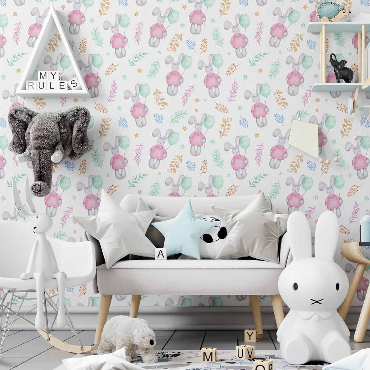 Bunnies with Ballons Peel & Stick Wallpaper N04051