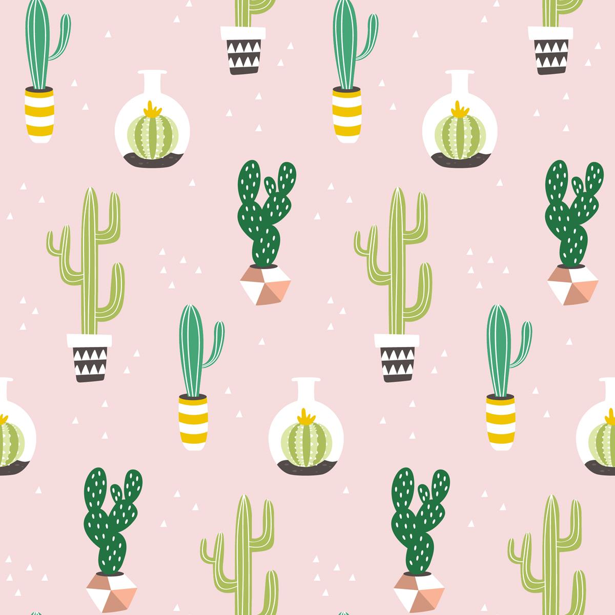 Cactus Minimalists Pink Peel & Stick Wallpaper N07099