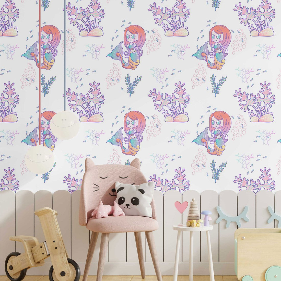 • Load image into Gallery viewer, Childlike Mermaid Peel & Stick Wallpaper N014041