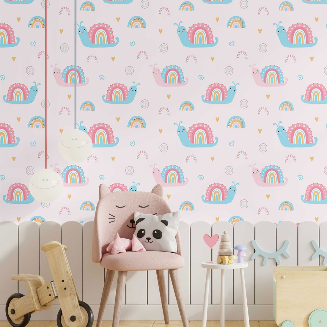Childlike Rainbow Snails Peel & Stick Wallpaper N014044