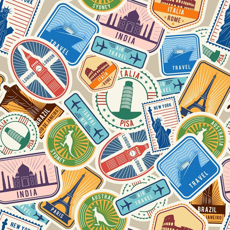 Colorful Countrys Postal Stamp Peel & Stick Wallpaper N05019