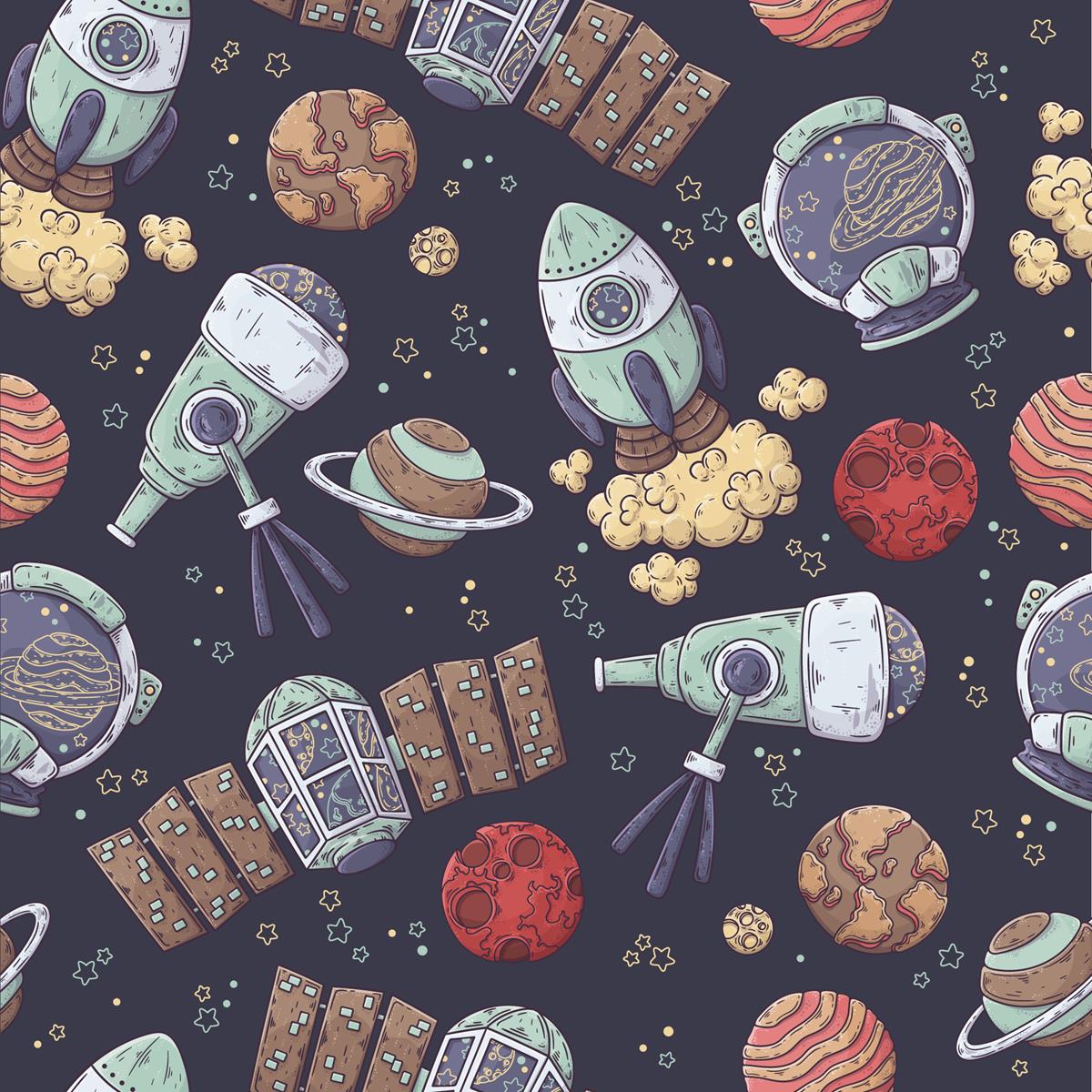 Colorful Space Cartoon Peel & Stick Wallpaper N04109