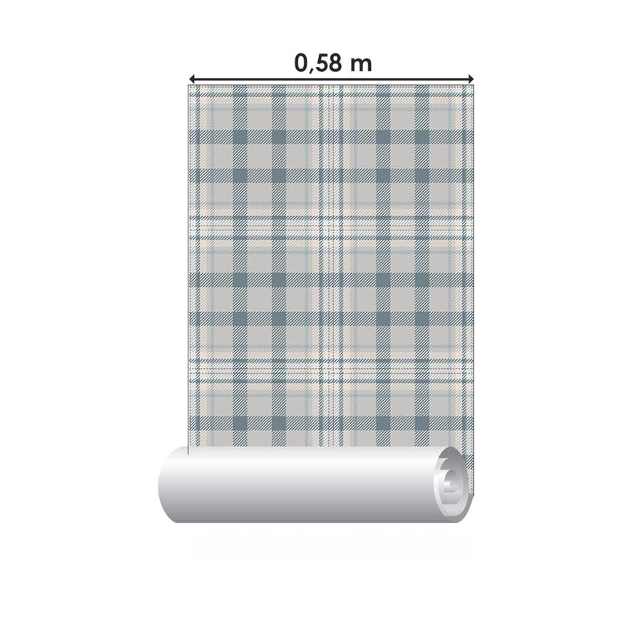 Cream and Blue Plaid Peel & Stick Wallpaper N06038