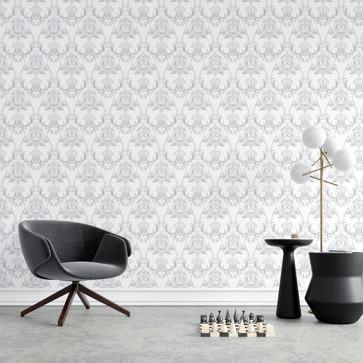 • Load image into Gallery viewer, Damask Gray Peel & Stick Wallpaper N04139