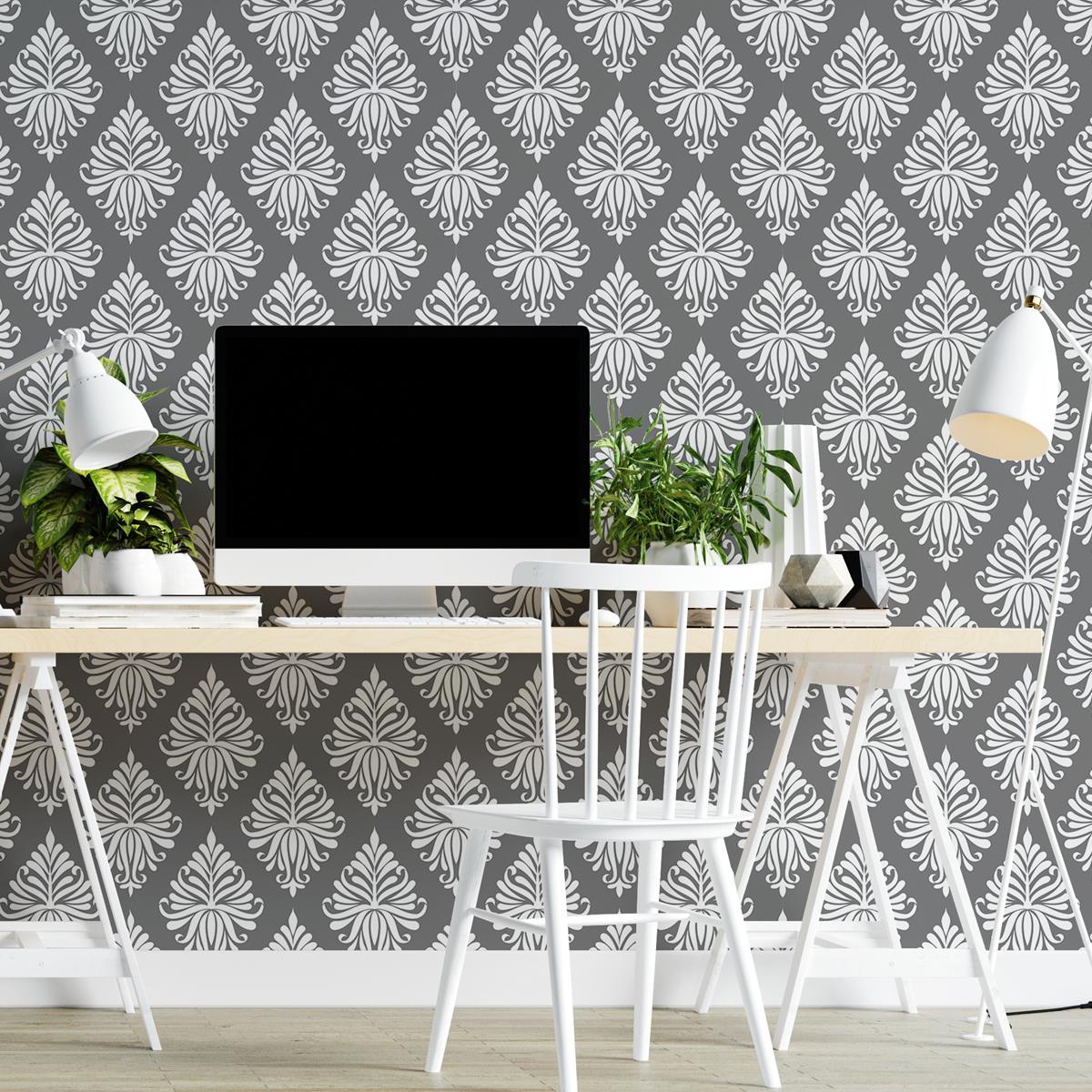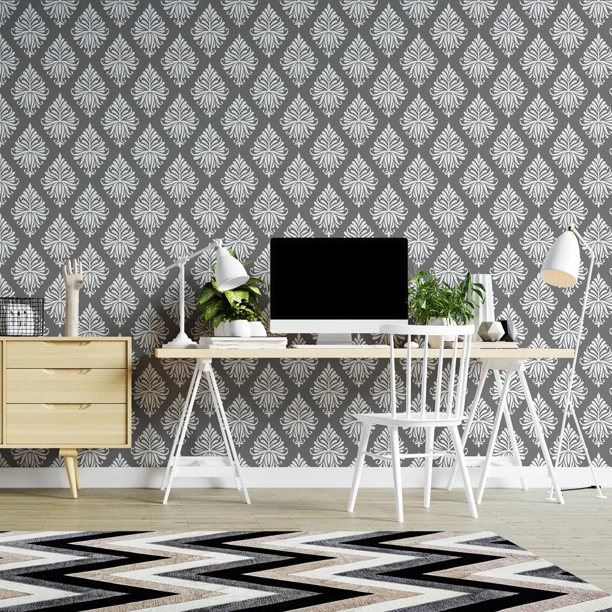 Damask Grey Leaves Peel & Stick Wallpaper N04156