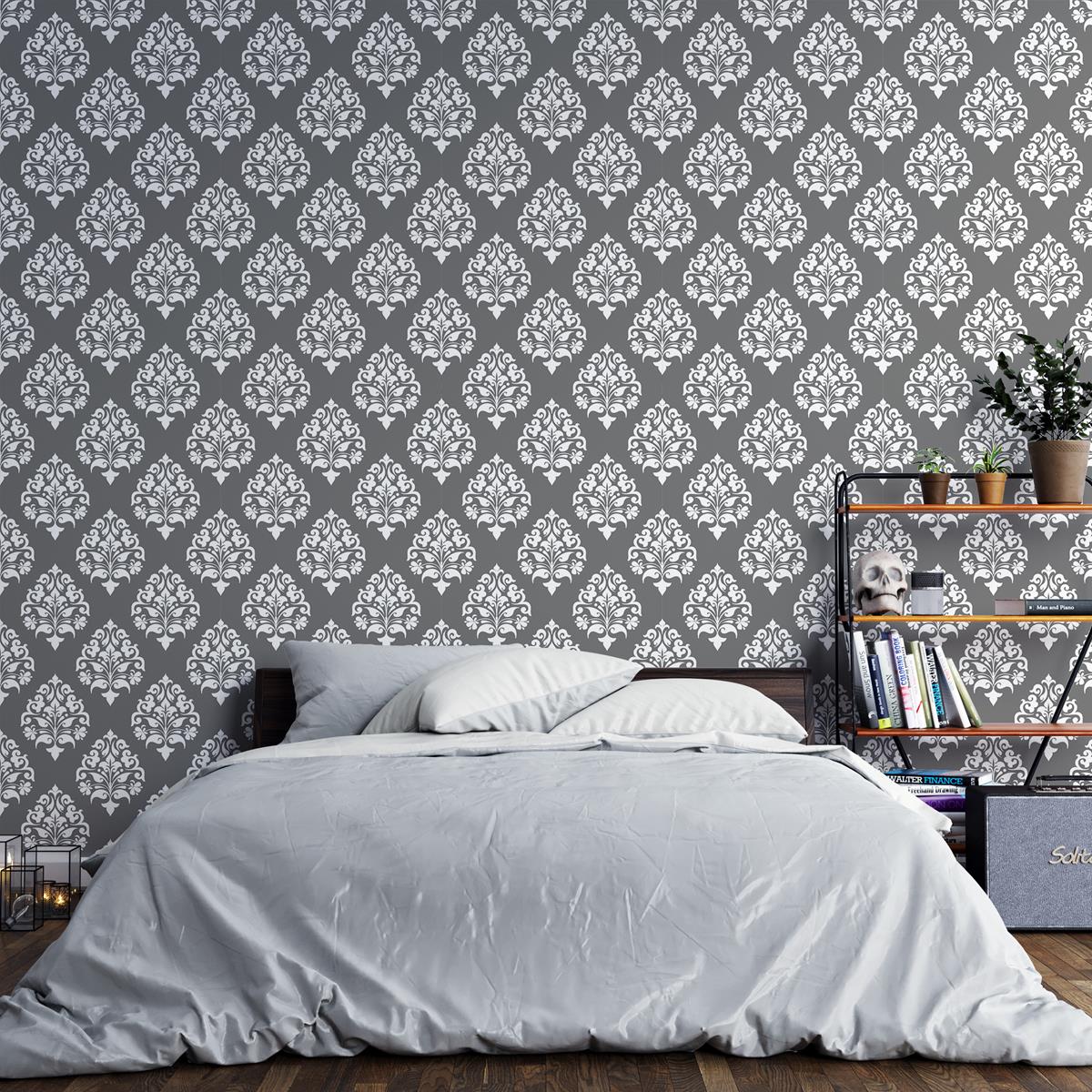 Damask Grey Leaves Peel & Stick Wallpaper N04157