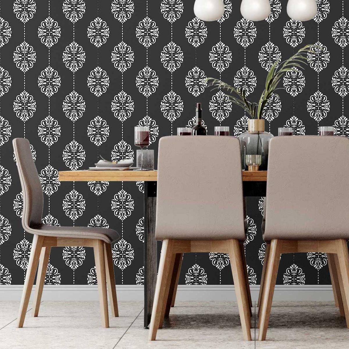 Damask in Black and White Peel & Stick Wallpaper N07042