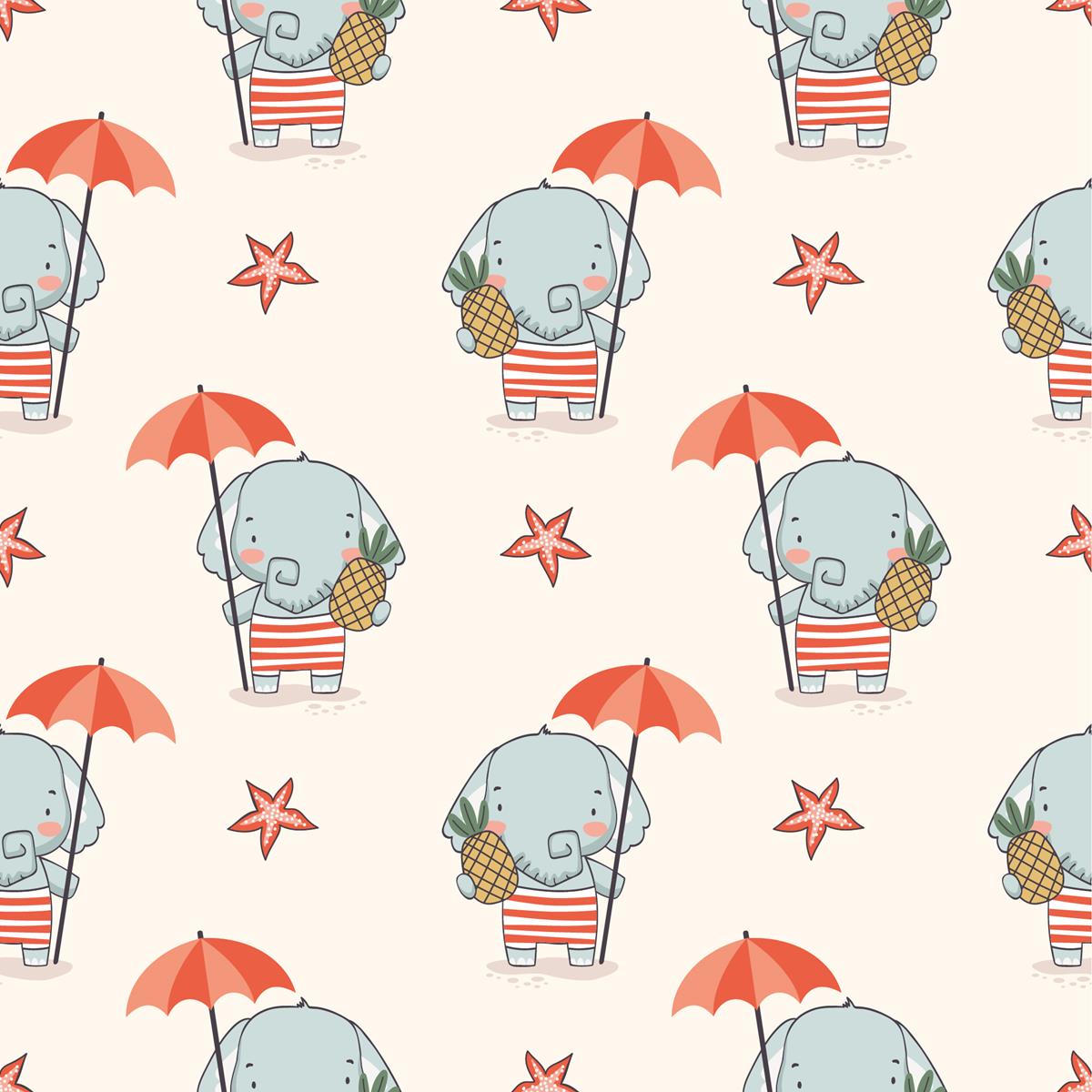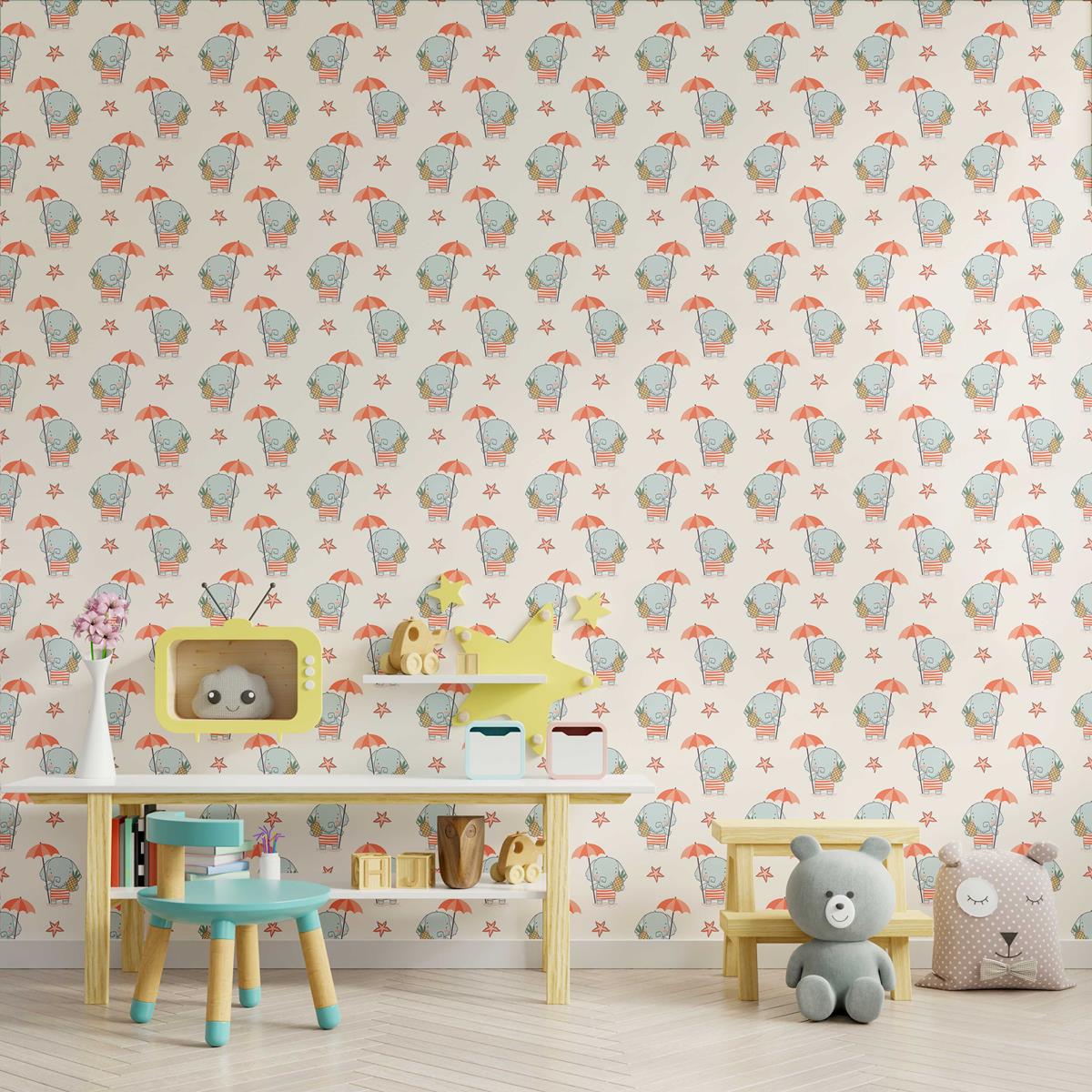 Elephants and Umbrella Peel & Stick Wallpaper N09081