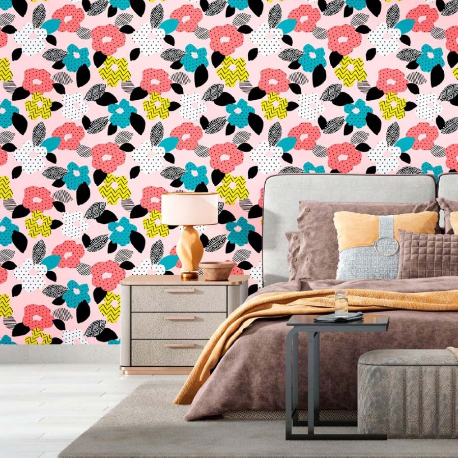 Floral Dots and Chevron Peel & Stick Wallpaper N012046