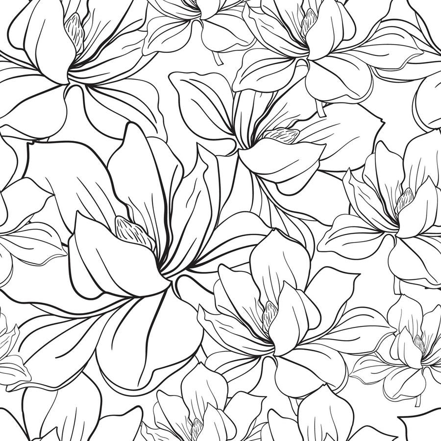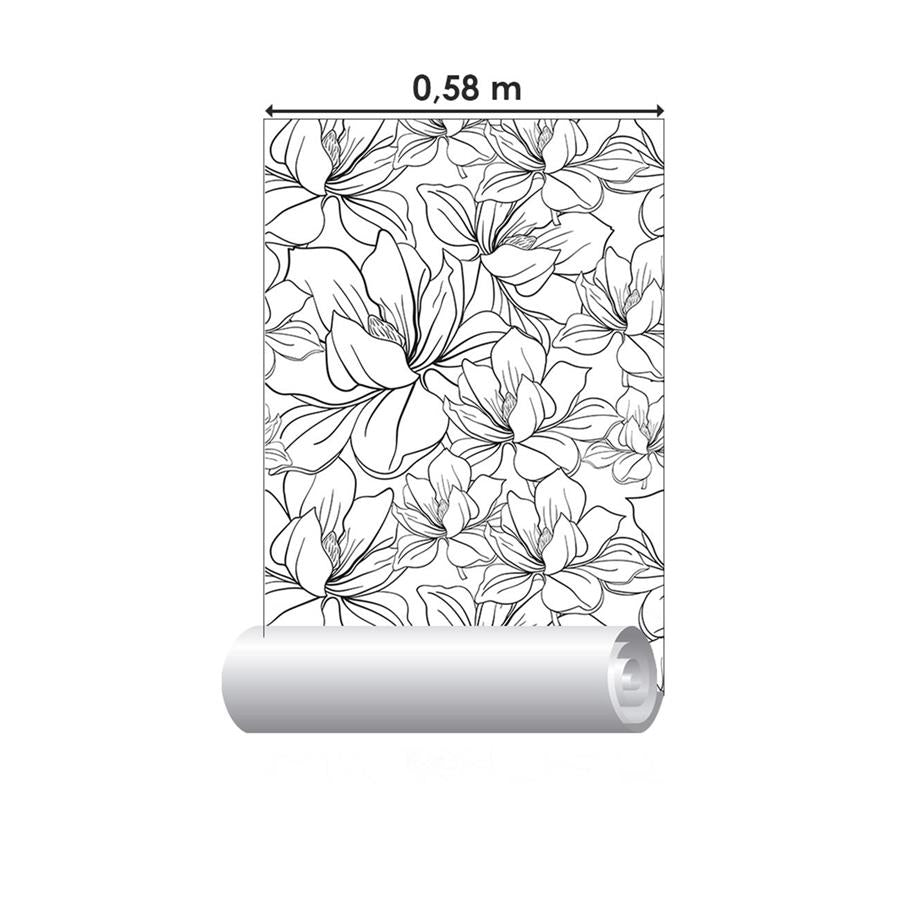 Floral Lines White and Black Peel & Stick Wallpaper N06096