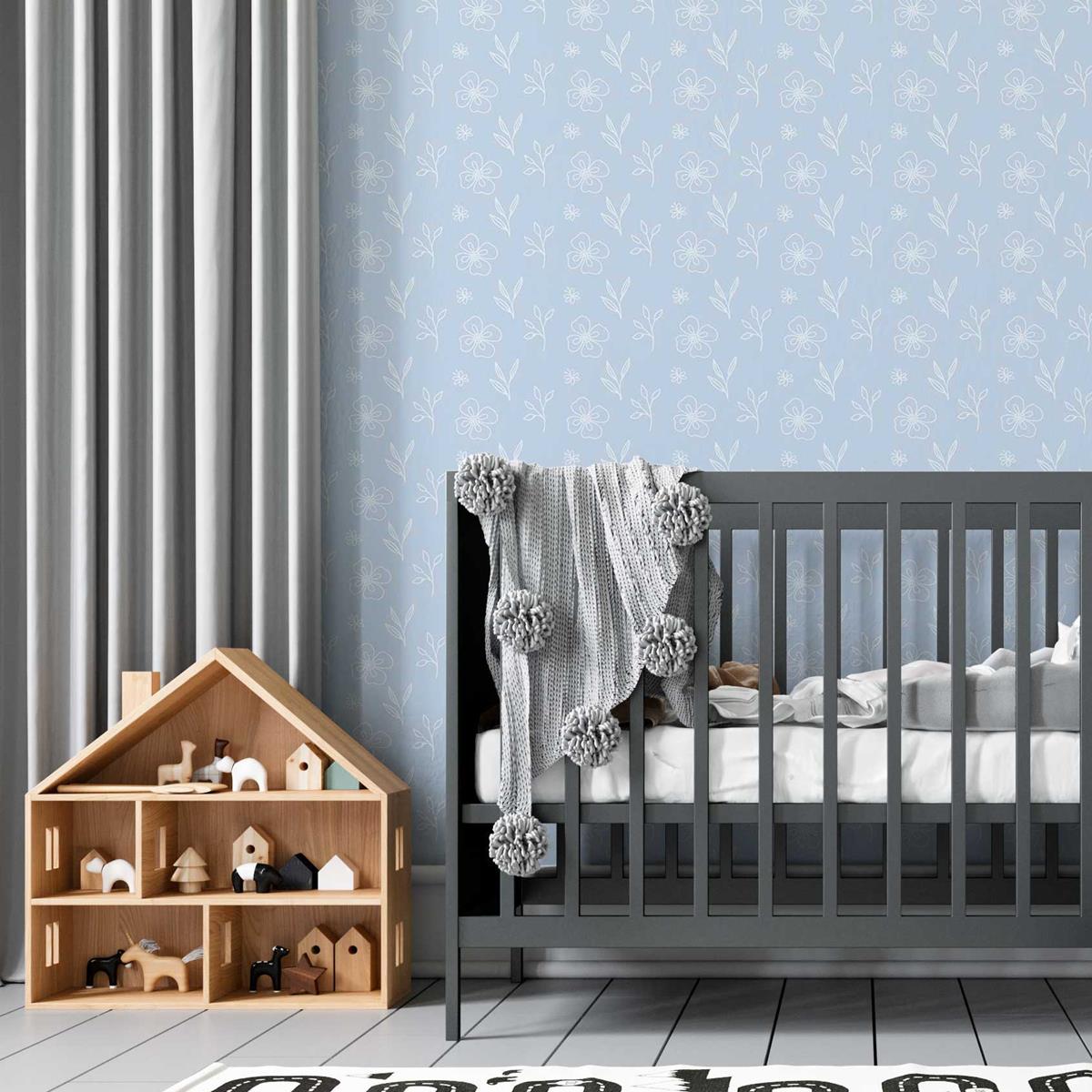 Flowers and Leaves Blue Peel & Stick Wallpaper N05277