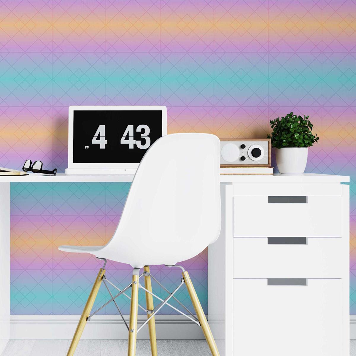 Geometric Blue Lilac and Orange Gradient Peel & Stick Wallpaper N07155