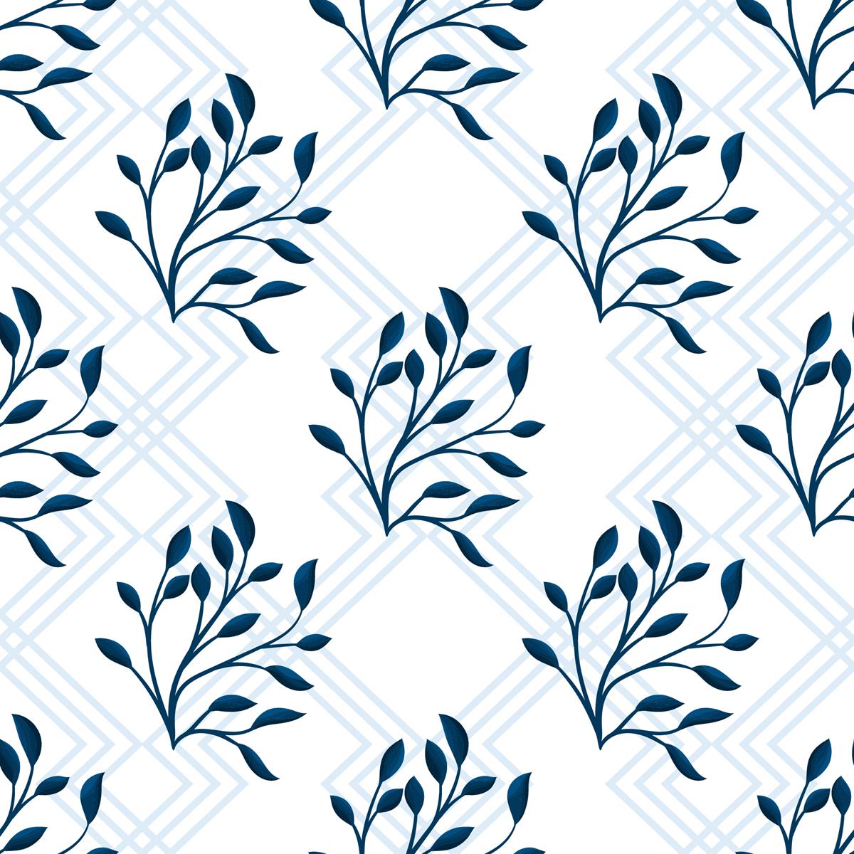 Geometrics Leaves Blue Peel & Stick Wallpaper N05081