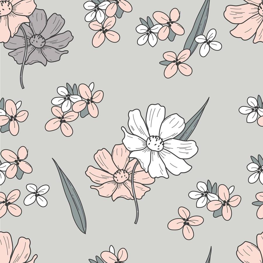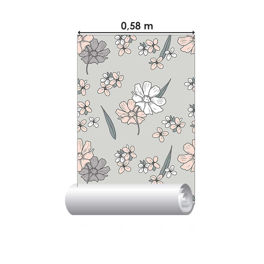 Gray and Pink Wildflowers Peel & Stick Wallpaper N06156