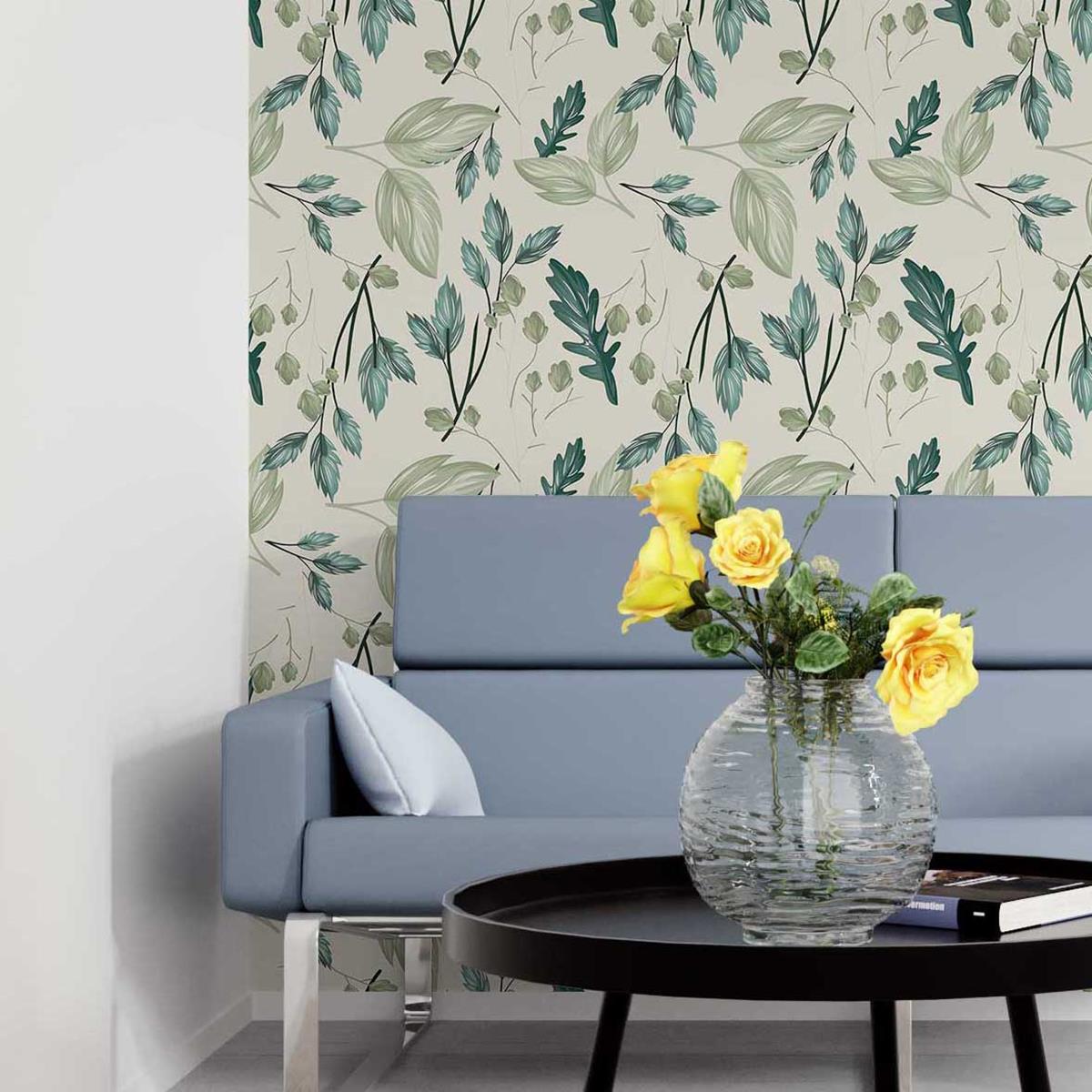 Green Leaves Fundo White Peel & Stick Wallpaper N05238