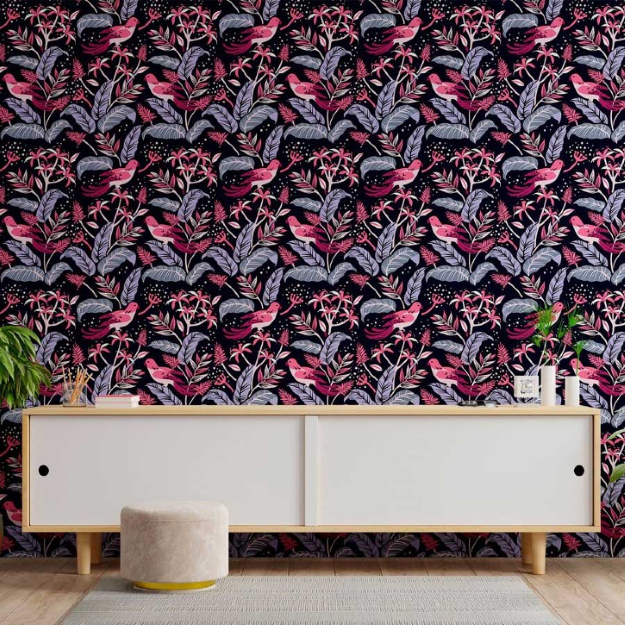Leaves and Birds Peel & Stick Wallpaper N013041