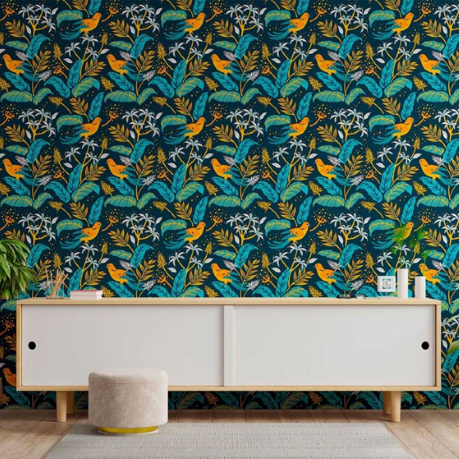 Leaves and Birds Peel & Stick Wallpaper N013042