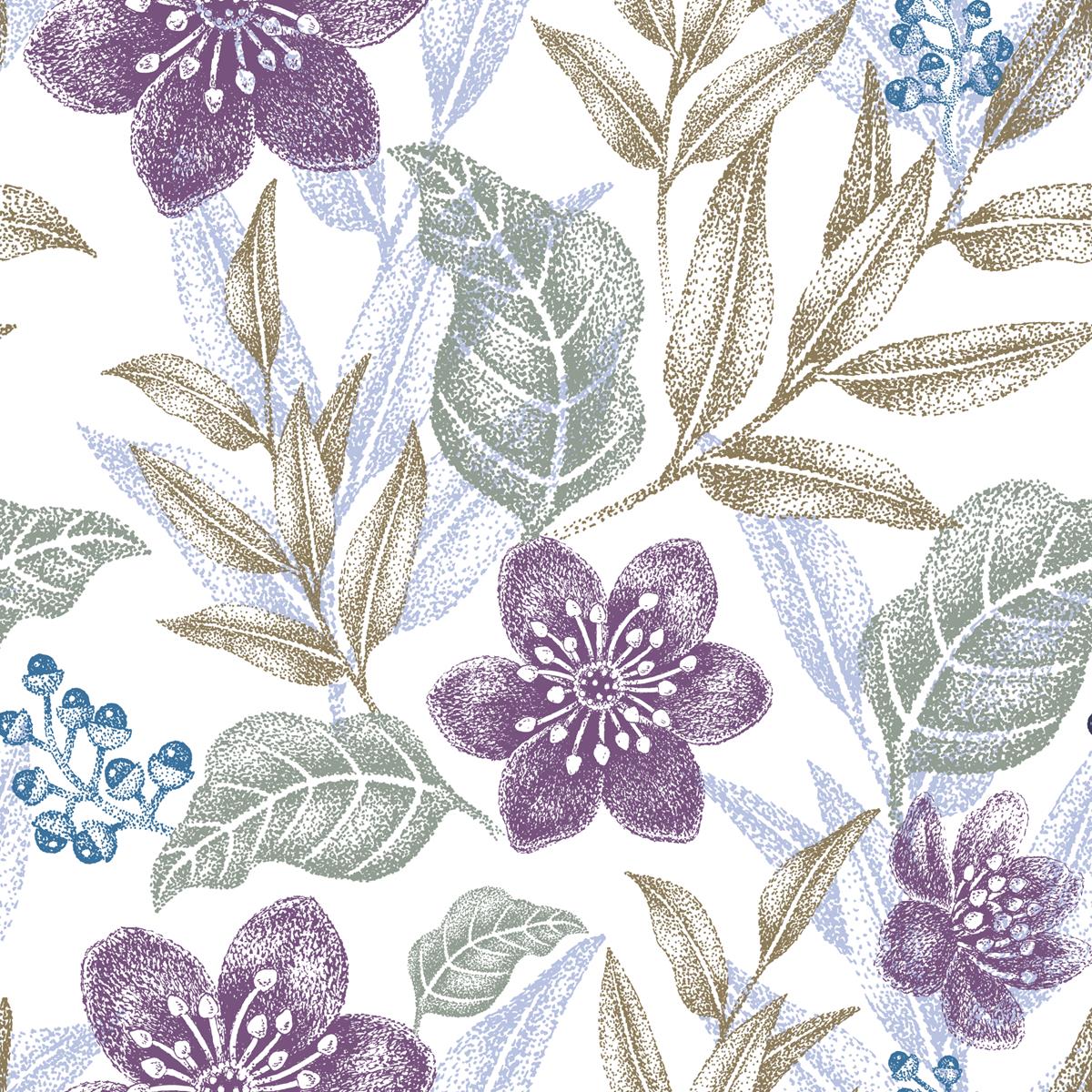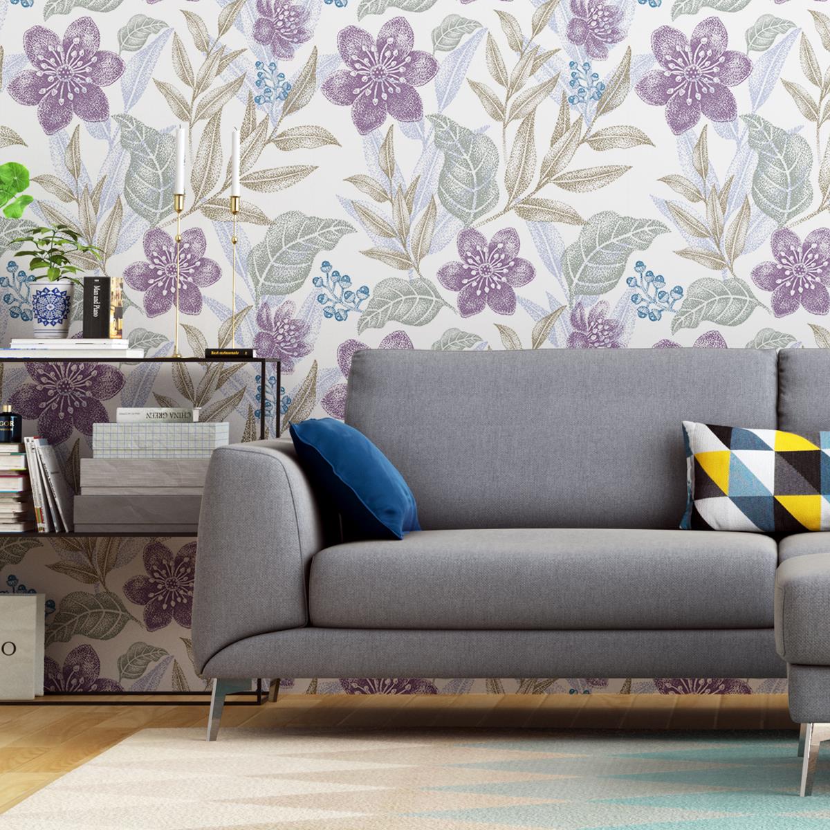 Leaves & Flowers Lilac Peel & Stick Wallpaper N04180