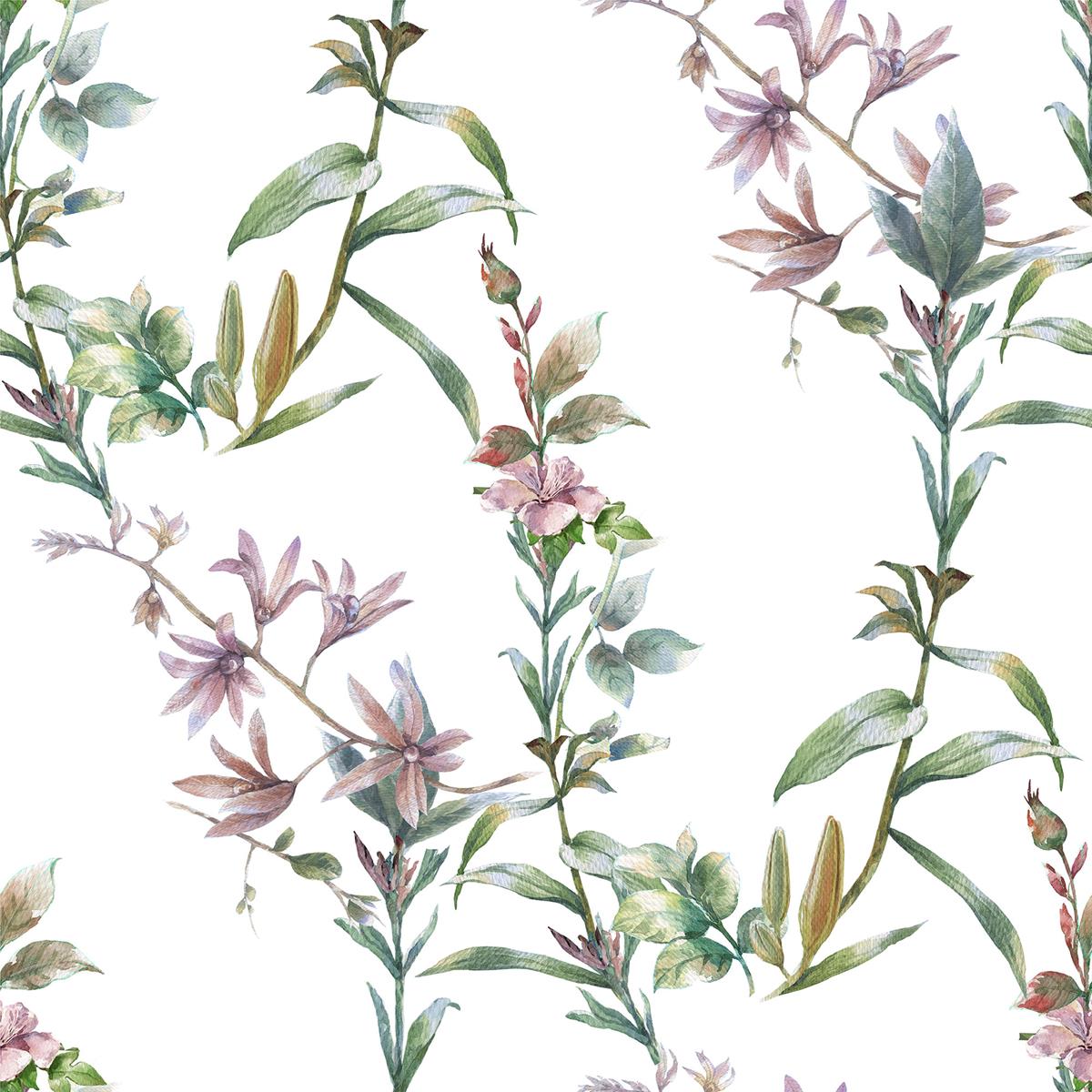 Leaves & Flowers Watercolor Peel & Stick Wallpaper N010200